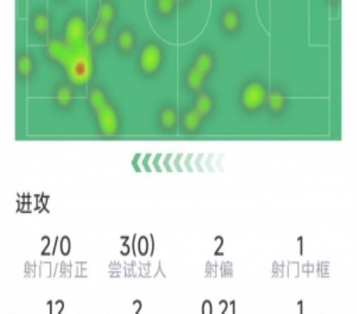 维尔茨本场数据:3射1正,2次过人,7次对抗仅2成功,评分6.2分