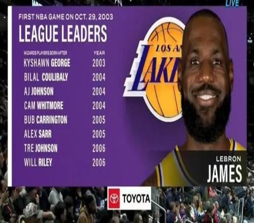 据数据显示,凯肖恩-乔治、库利巴利、AJ-约翰逊、惠特莫尔、卡林顿、萨尔、特雷-约翰逊、威尔-莱利均在詹姆斯NBA首秀后出生。