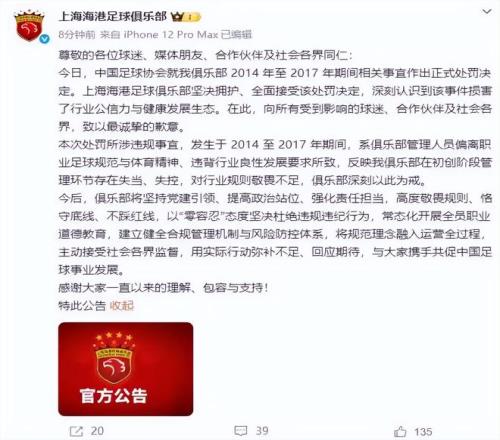 不得已之下,上海海港只能“随大流”,王小平在2022年反腐风暴中落马,他被查出涉案金额645万人民币,其中上港“上贡”了30万人民币。